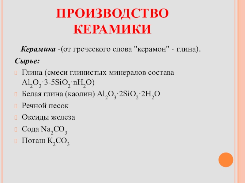Слайд 6ПРОИЗВОДСТВО КЕРАМИКИ