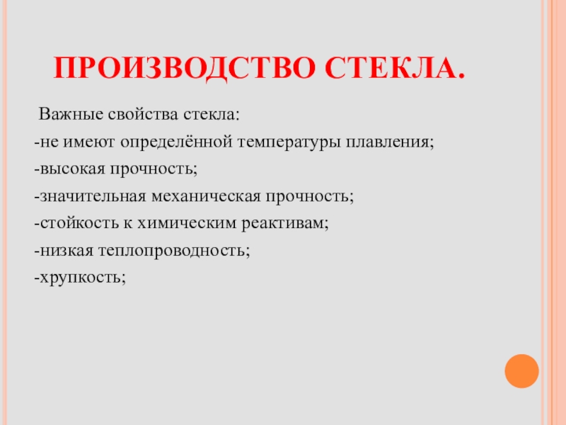 Важные свойства стекла: