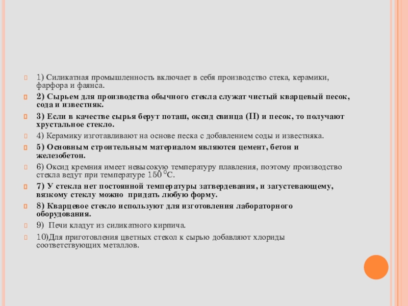 1) Силикатная промышленность включает в себя производство