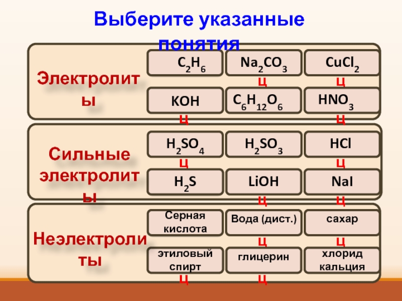 Кислоты:H2S,H2SiO3,HNO2,H2CO3,CH3COOH и другие органические кислоты