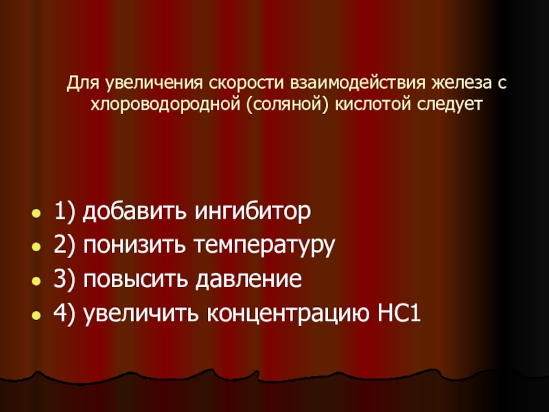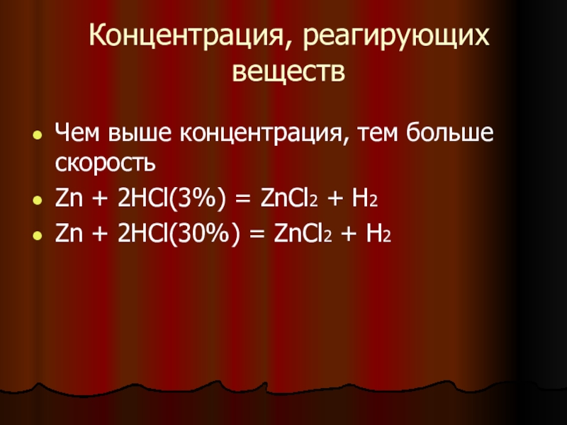1) концентрация кислоты
