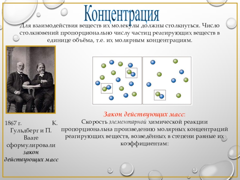 1867 г. К.Гульдберг и П.Вааге сформулировали закон действующих масс