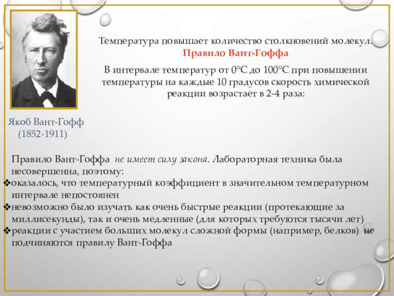 реакции с участием больших молекул сложной формы (например, белков) не подчиняются правилу Вант-Гоффа