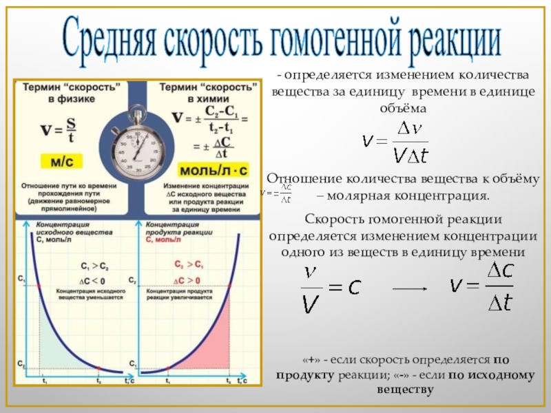 «+» - если скорость определяется по продукту реакции; «-» - если по исходному веществу