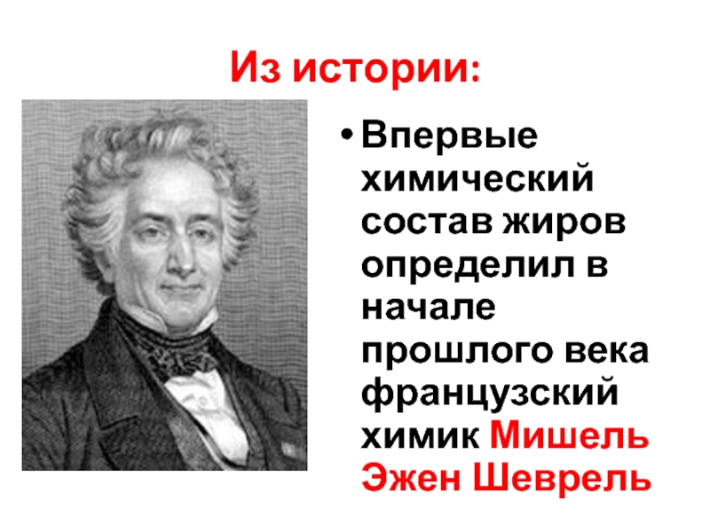 Впервые химический состав жиров определил в начале прошлого века французский