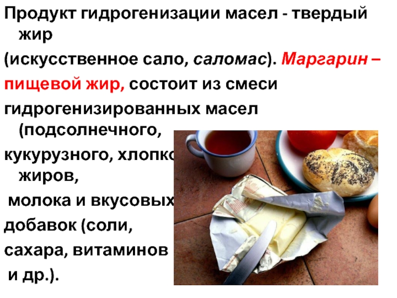 Слайд 24Продукт гидрогенизации масел - твердый жир