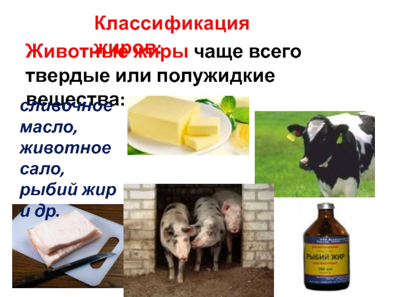 Слайд 18Животные жиры чаще всего твердые или полужидкие вещества: