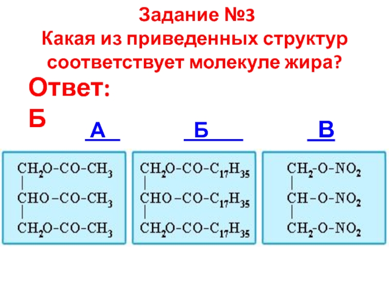 Какая из приведенных структур соответствует молекуле жира?