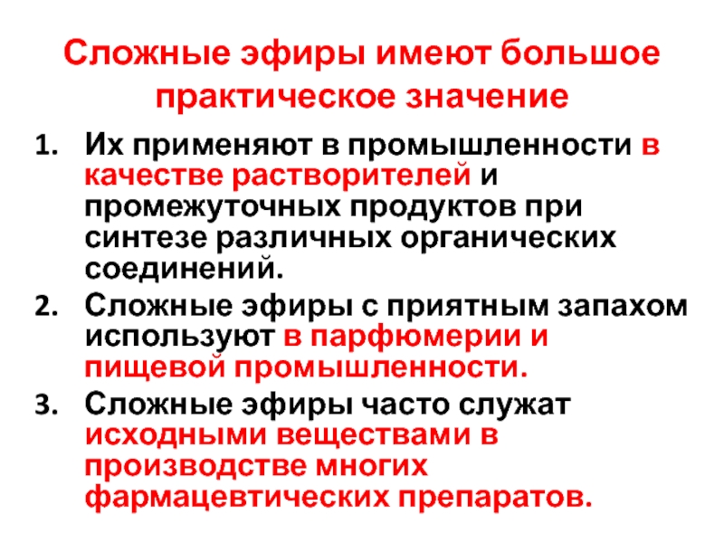 Слайд 9Сложные эфиры имеют большое практическое значение