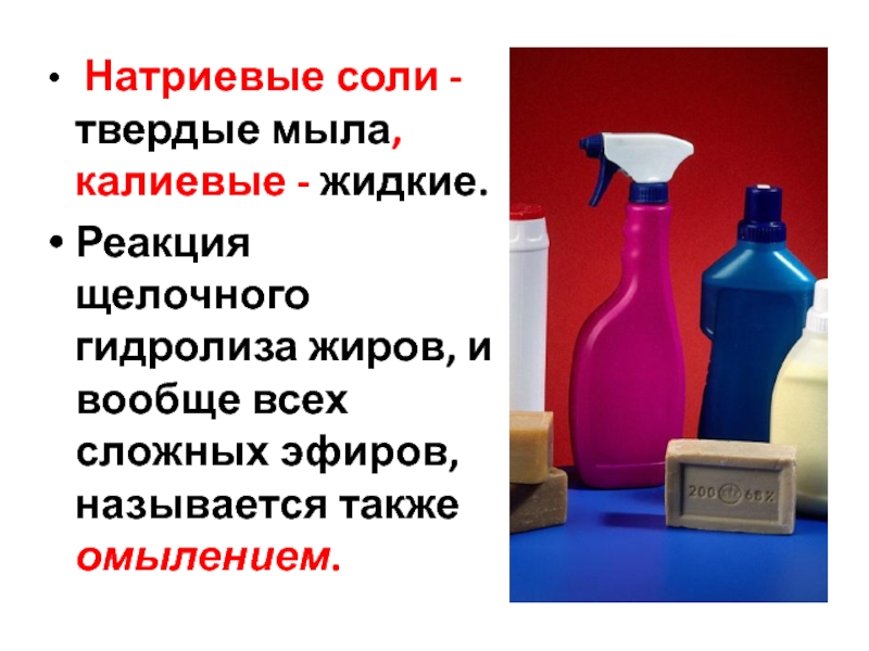 Слайд 26 Натриевые соли - твердые мыла, калиевые - жидкие.