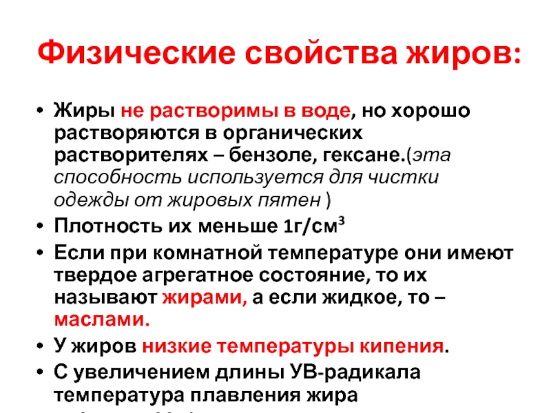Слайд 15Физические свойства жиров: