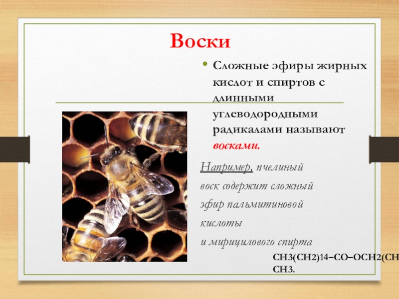 Сложные эфиры жирных кислот и спиртов с длинными углеводородными радикалами называют