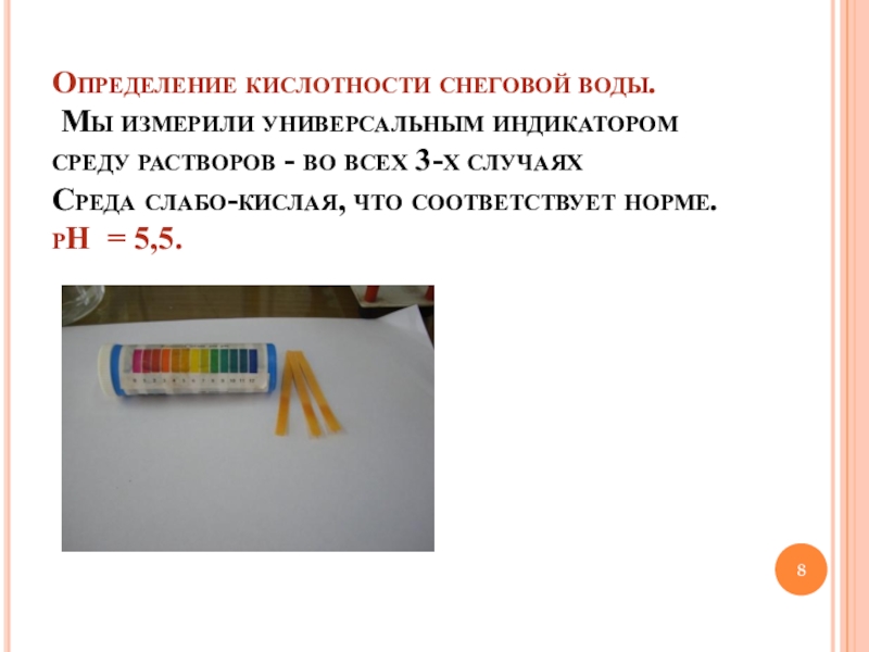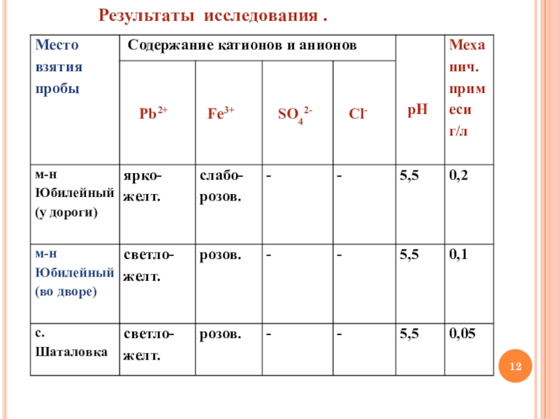 2. Определить в пробах снега наличие механических примесей, катионов металлов и ряда анионов, кислотность.