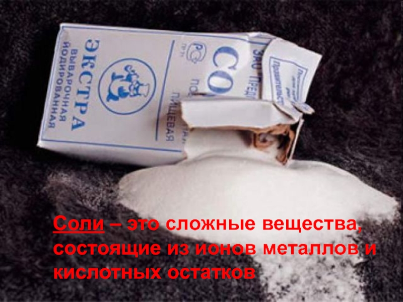 Соли – это сложные вещества, состоящие из ионов металлов и кислотных