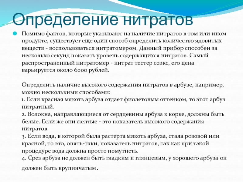 Помимо фактов, которые указывают на наличие нитратов в том или