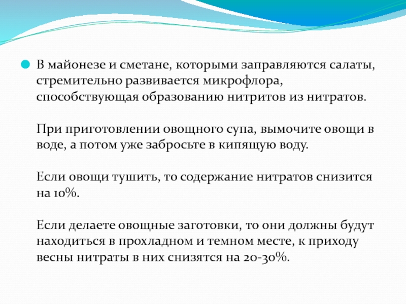 Если овощи тушить, то содержание нитратов снизится на 10%.