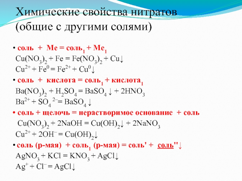 - нитраты активных металлов (Na, K, Ca, Bа и аммония)