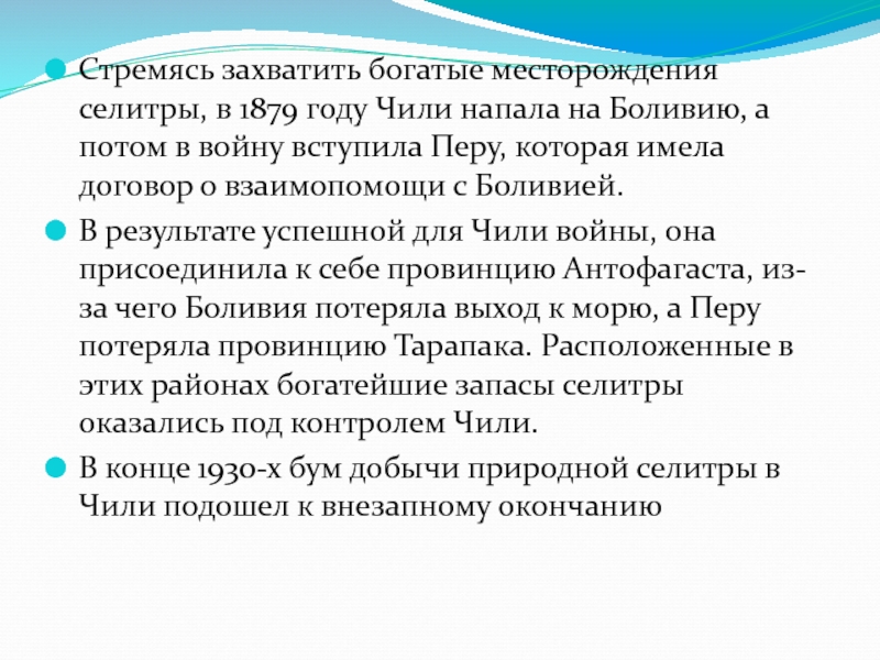 Боливию, а потом в войну вступила Перу, которая имела договор о взаимопомощи с Боливией.