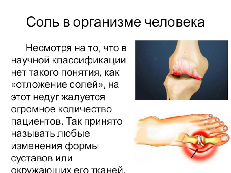 Соль в организме человека     Несмотря на то, что в научной классификации нет такого