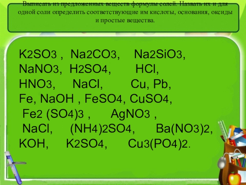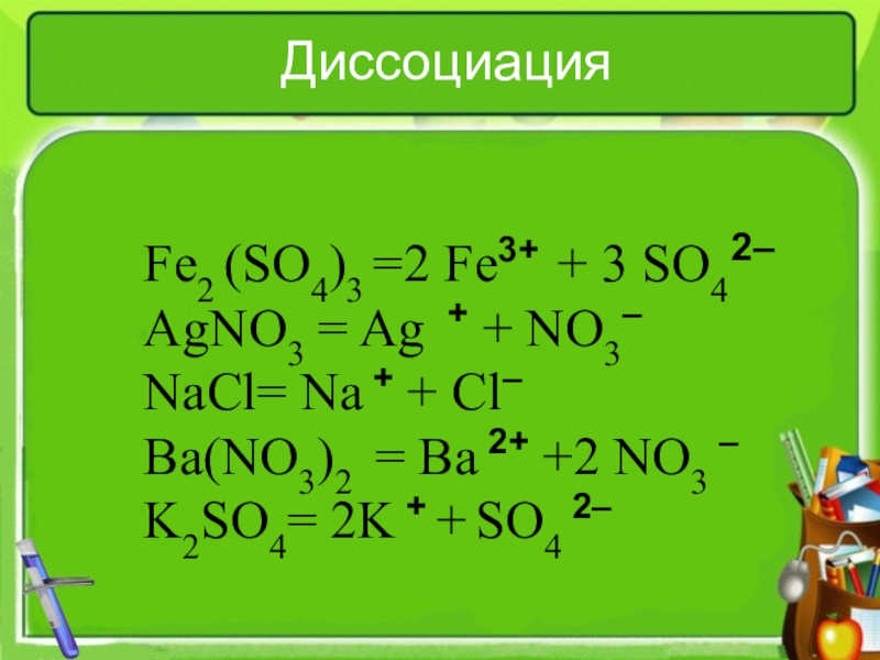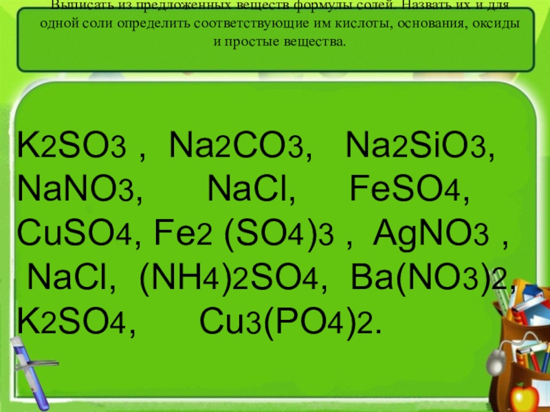 NaNO3, NaCl, FeSO4, СuSO4, Fe2 (SO4)3 , AgNO3 ,