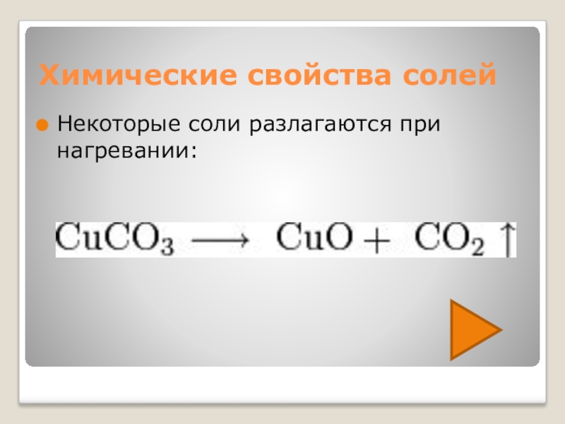 Химические свойства солейНекоторые соли разлагаются при нагревании: