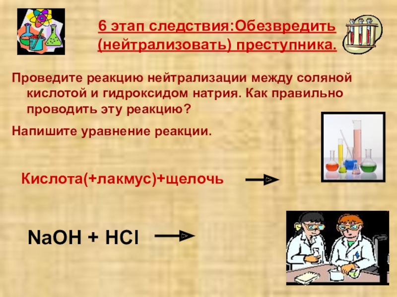 Кислота(+лакмус)+щелочь