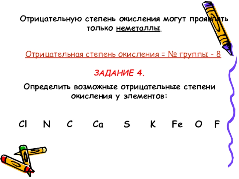 Определить возможные отрицательные степени окисления у элементов: