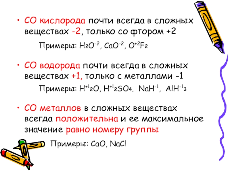 Сумма положительных и отрицательных степеней окисления элементов в соединении равна 0