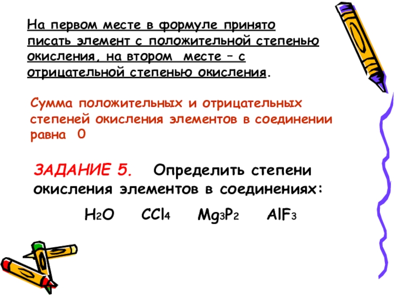 ЗАДАНИЕ 5. Определить степени окисления элементов в соединениях: