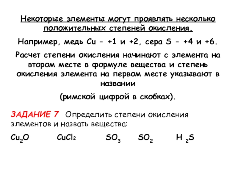 ЗАДАНИЕ 7 Определить степени окисления элементов и назвать вещества: