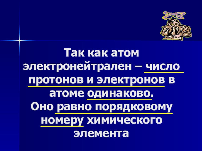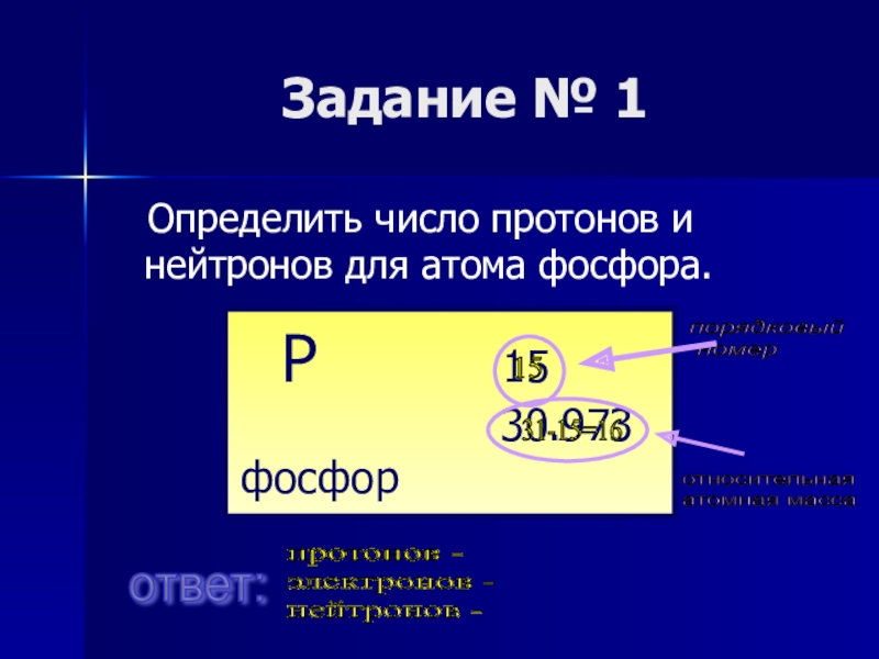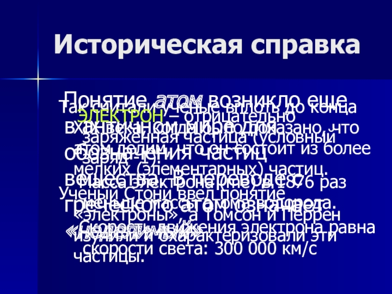 ЭЛЕКТРОН – отрицательно заряженная частица (условный заряд -1).