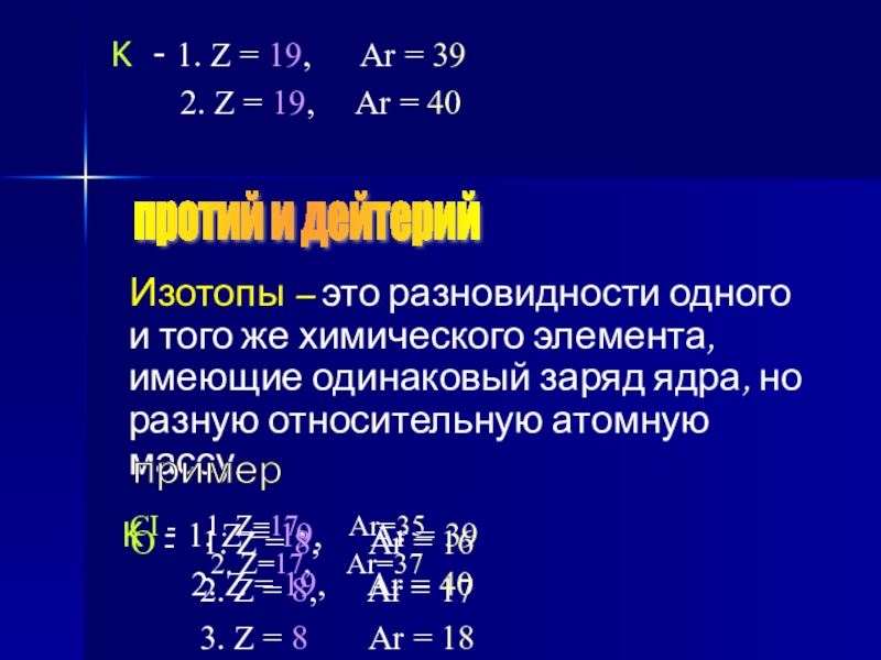 Изотопы – это разновидности одного и того же химического элемента, имеющие одинаковый заряд ядра, но разную относительную атомную массу.