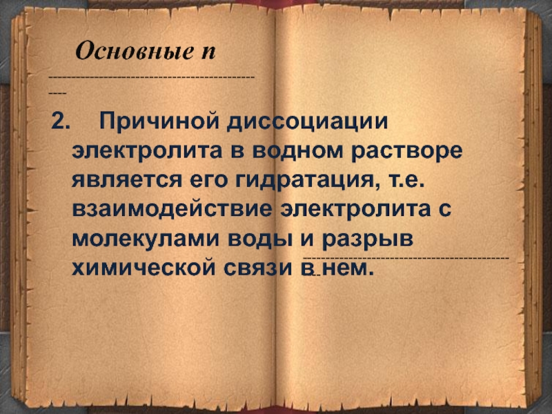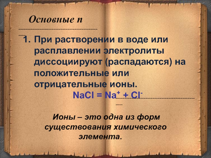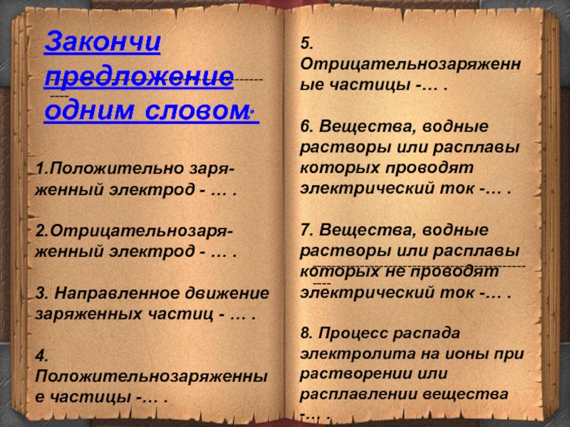 8. Процесс распада электролита на ионы при растворении или расплавлении вещества -… .