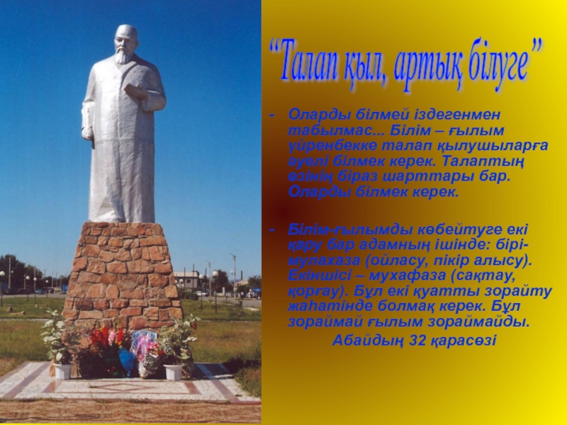 Слайд 3Оларды білмей іздегенмен табылмас... Білім – ғылым үйренбекке талап қылушыларға әуелі
