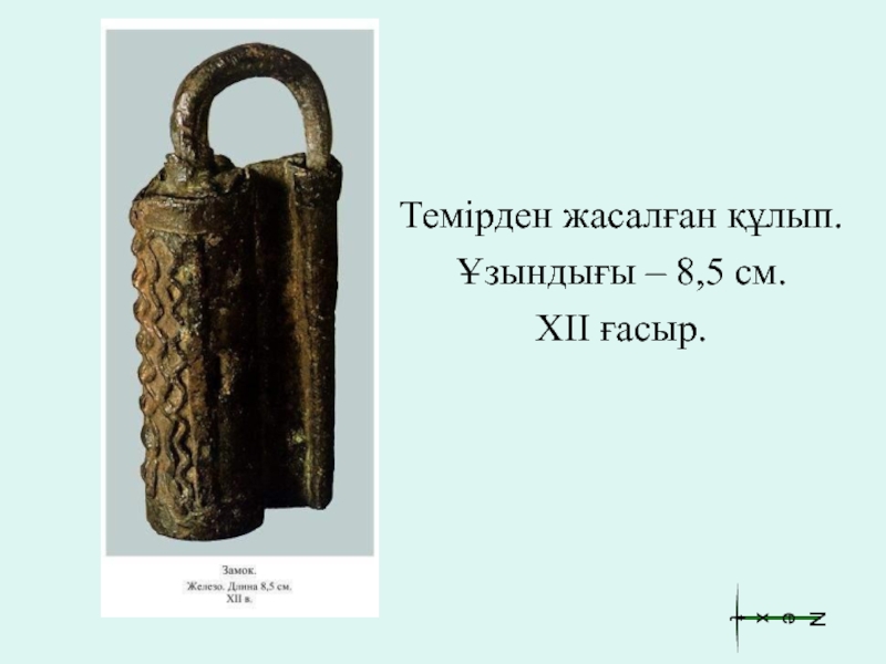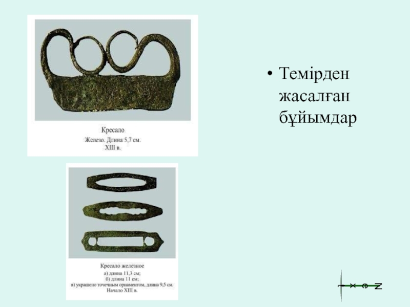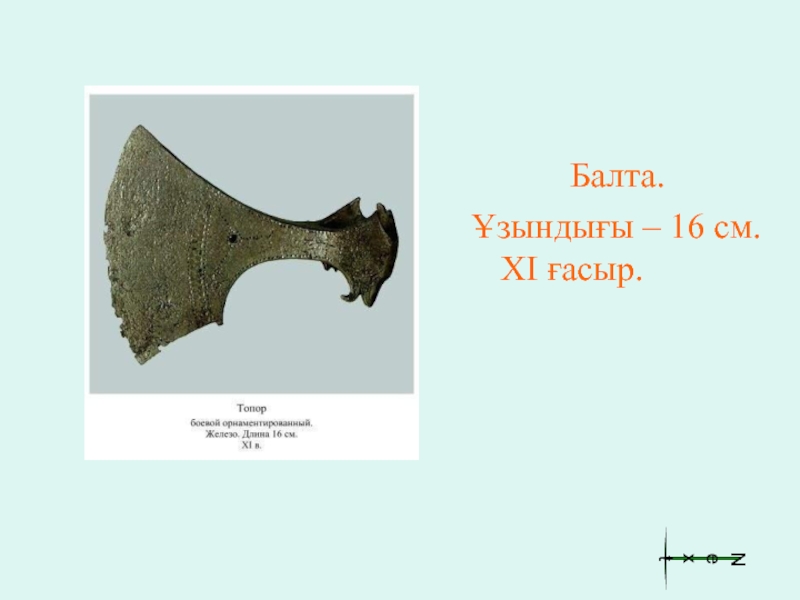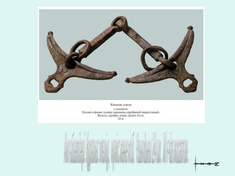 Слайд 22Ат әбзелдері. Құрамы: темір, күміс және т.б. Ұзындығы 24 см. ХІ