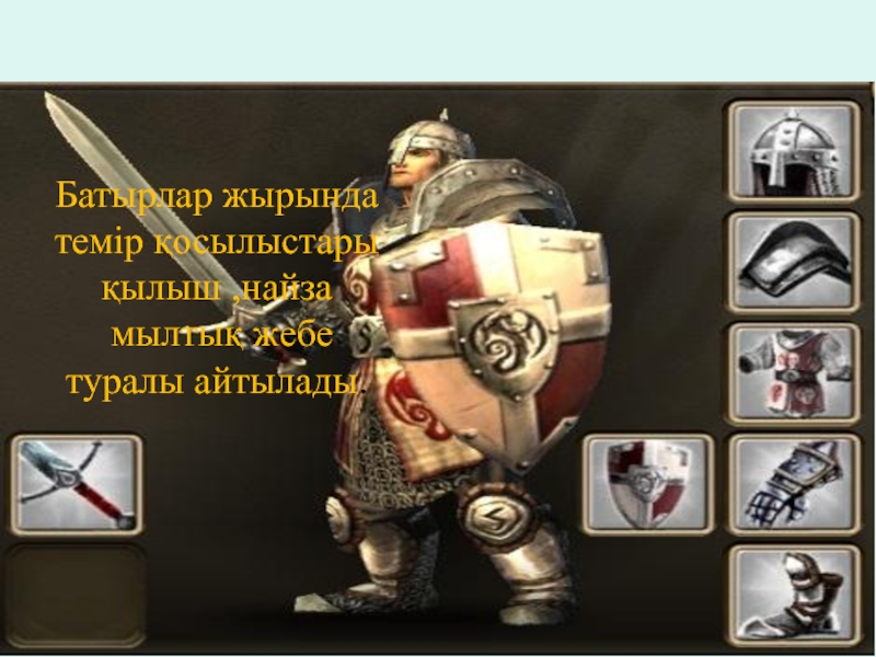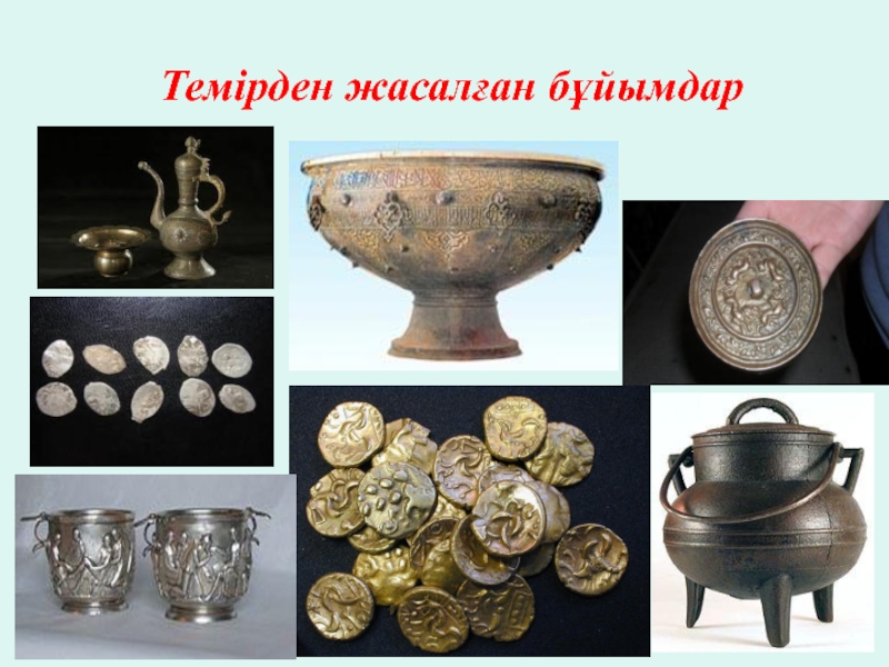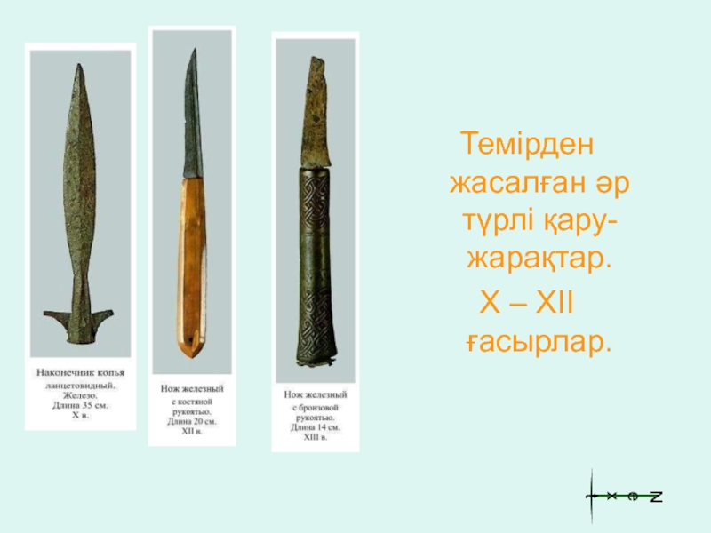 Слайд 20Темірден жасалған әр түрлі қару-жарақтар.