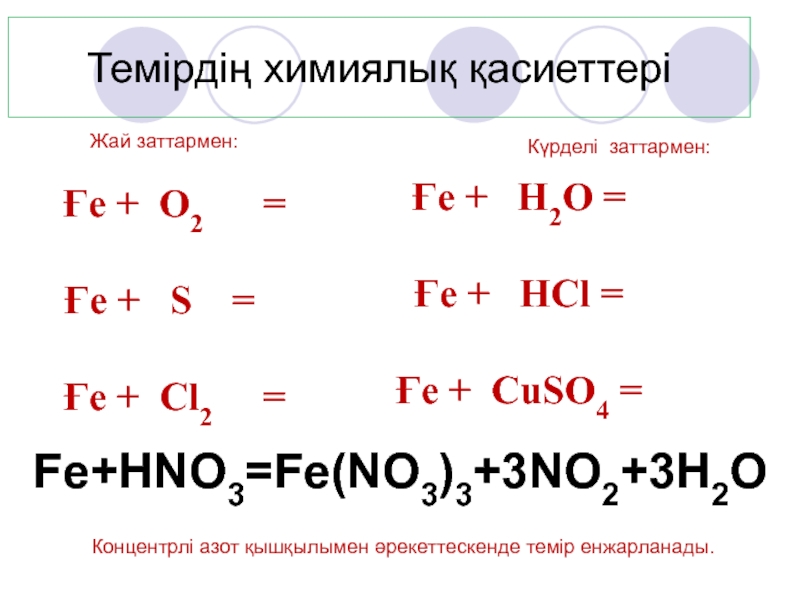 Концентрлі азот қышқылымен әрекеттескенде темір енжарланады.