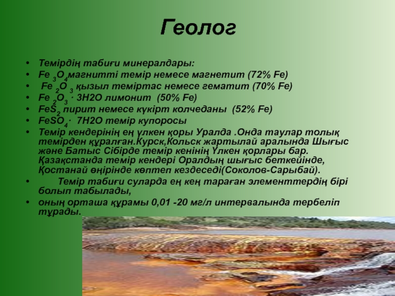 6. Темірдің геохимиялық қасиеттері; (геолог, минералог)