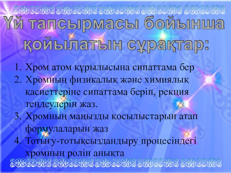Тотығу-тотықсыздандыру процесіндегі хромның ролін анықта
