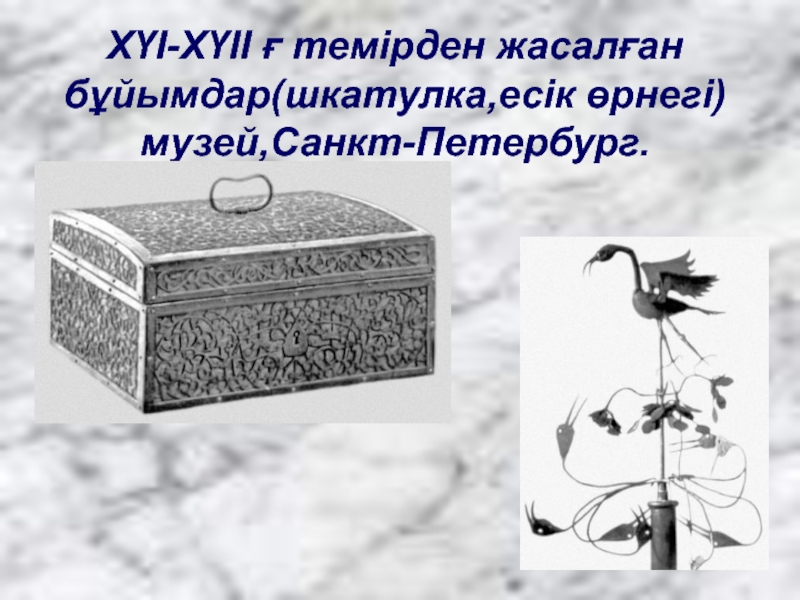 Слайд 24ХҮІ-ХҮІІ ғ темірден жасалған бұйымдар(шкатулка,есік өрнегі)музей,Санкт-Петербург.