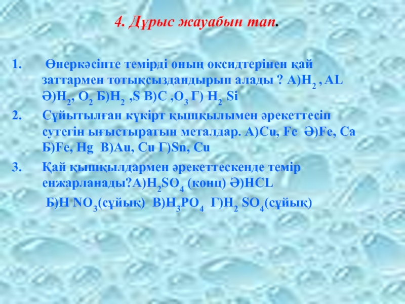 Б)H NO3(сұйық) В)H3PO4 Г)H2 SO4(сұйық)