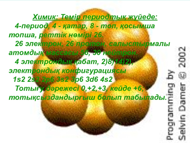 1. Темірдің периодтық жүйедегі орыны; (химик)