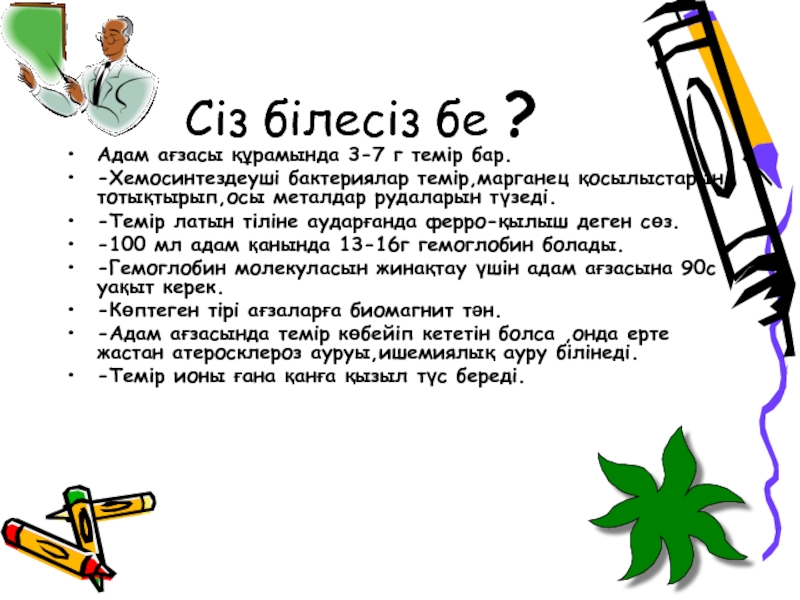 -Адам ағзасында темір көбейіп кететін болса ,онда ерте жастан атеросклероз ауруы,ишемиялық ауру білінеді.