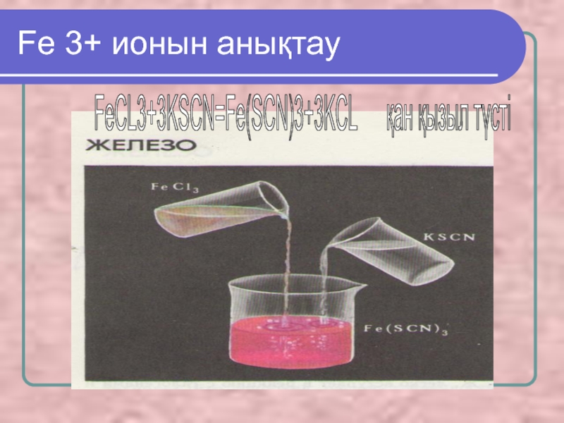 FeCL3+3KSCN=Fe(SCN)3+3KCL қан қызыл түсті