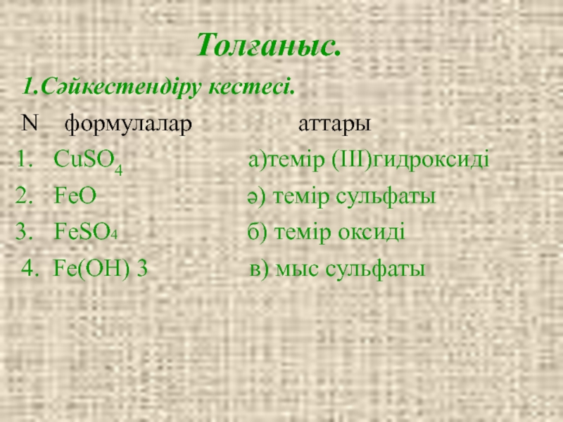 Темірдің күкіртпен қосылыстарын тап,ата темір сульфиді,темір сульфаты,пирит темір сульфиті