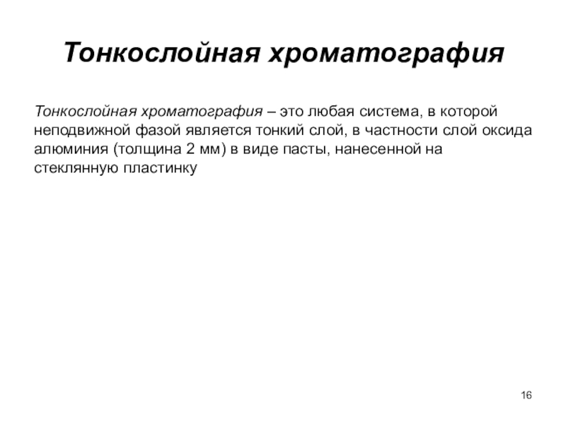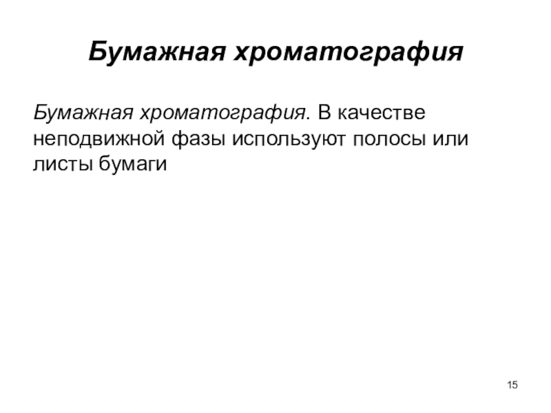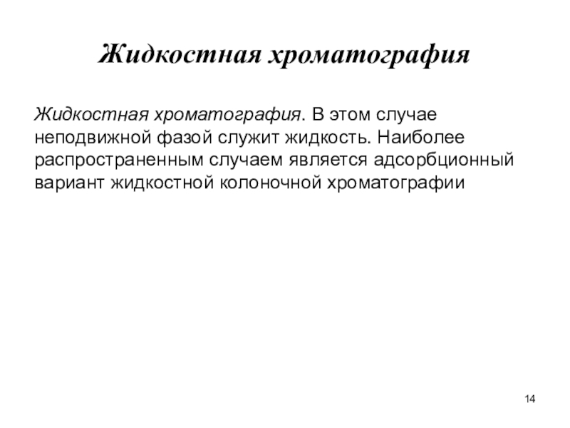 – неподвижная фаза растворяет разделяемые вещества из раствора в несмешивающемся растворителе;