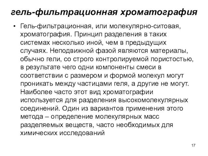 – неподвижная фаза имеет пористую структуру, затрудняющую диффузию молекул разделяемых веществ в этой фазе.