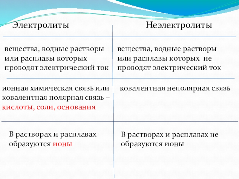 ионная химическая связь или ковалентная полярная связь – кислоты, соли, основания