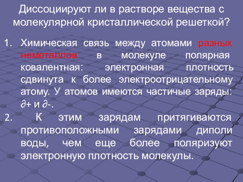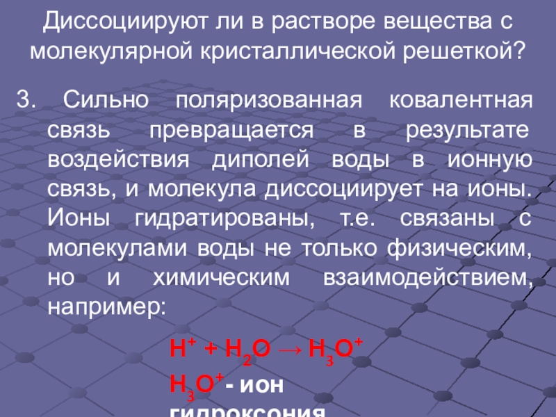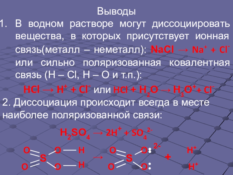 2. Диссоциация происходит всегда в месте наиболее поляризованной связи: