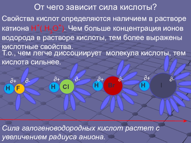 Сила галогеноводородных кислот растет с увеличением радиуса аниона.